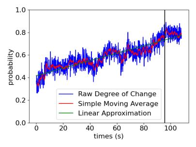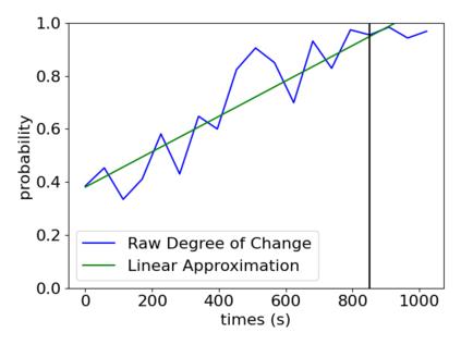 Cooking tasks are characterized by large changes in the state of the food, which is one of the major challenges in robot execution of cooking tasks. In particular, cooking using a stove to apply heat to the foodstuff causes many special state changes that are not seen in other tasks, making it difficult to design a recognizer. In this study, we propose a unified method for recognizing changes in the cooking state of robots by using the vision-language model that can discriminate open-vocabulary objects in a time-series manner. We collected data on four typical state changes in cooking using a real robot and confirmed the effectiveness of the proposed method. We also compared the conditions and discussed the types of natural language prompts and the image regions that are suitable for recognizing the state changes.