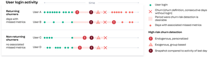 Mobile health apps are revolutionizing the healthcare ecosystem by improving communication, efficiency, and quality of service. In low- and middle-income countries, they also play a unique role as a source of information about health outcomes and behaviors of patients and healthcare workers, while providing a suitable channel to deliver both personalized and collective policy interventions. We propose a framework to study user engagement with mobile health, focusing on healthcare workers and digital health apps designed to support them in resource-poor settings. The behavioral logs produced by these apps can be transformed into daily time series characterizing each user's activity. We use probabilistic and survival analysis to build multiple personalized measures of meaningful engagement, which could serve to tailor content and digital interventions suiting each health worker's specific needs. Special attention is given to the problem of detecting churn, understood as a marker of complete disengagement. We discuss the application of our methods to the Indian and Ethiopian users of the Safe Delivery App, a capacity-building tool for skilled birth attendants. This work represents an important step towards a full characterization of user engagement in mobile health applications, which can significantly enhance the abilities of health workers and, ultimately, save lives.
