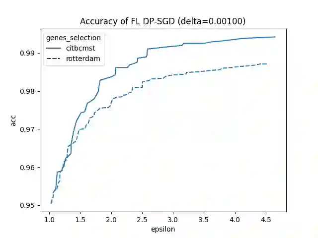 翻译:自2014年以来,NIH资助了国家生物医学计算中心(IDASH) iDASH(综合分析、匿名、SHaring数据综合数据),每年举办关于基因组数据私人计算主题的年度竞赛,对于2020年这一竞争迭代的一个方面,参与者受到挑战,要制定一种方法,利用不同的隐私(DP)对基因组癌预测模型进行联合学习(FL)培训,提交材料按特定一组DP预算的稳妥测试准确性排列。更确切地说,在这一方面,我们的任务是培训一个监督模型,用于预测两个虚拟中心通过基因组数据分割的乳腺癌发生率,同时确保通过DP进行模型转移时的数据隐私。在本条中,我们介绍了我们向这一竞争提交的第3位材料。在竞争期间,我们遇到了该条讨论的两个主要挑战:一) 确保隐私预算评估的正确性,二) 在预测性业绩和隐私预算之间实现可接受的权衡。