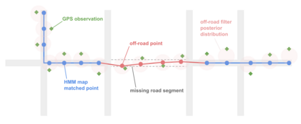 翻译:鉴于一系列可能稀少和噪音的GPS痕迹和道路网络地图,地图匹配算法可以以有原则的方式推断道路网络上最准确的轨迹。然而,如果道路网络是错误的(例如,由于道路丢失或不正确的地图绘制、停车场丢失、弯路限制错误或单行街道方向错误),标准的地图匹配算法无法重建正确的轨迹。在本文中,设计了一种跟踪能够在已知的道路网络上和网外移动的车辆的算法。它有效地统一了现有隐藏的Markov模型(HMM)的地图匹配和标准自由空间跟踪方法(例如,Kalman滑动),但是,如果道路网络是错误的(例如,由于道路缺失或不正确的地图绘制,该算法是一种互动的多模式过滤器(IMM),但需在允许的模型类型上附加额外假设,这里称之为半交互作用的多重模型(sIMM)过滤器。一个前端过滤器(适合实时跟踪)和后端的MAP取样步骤(对MAP的轨迹轨迹误判和地图匹配而言),在这里设置的框架是对具体跟踪模型的不具有一定的附加,在使用,并且根据错误的路径绘制地图绘制图绘制选择进行选择,并且将其他的模型进行更清楚的排序,可以用来取代。