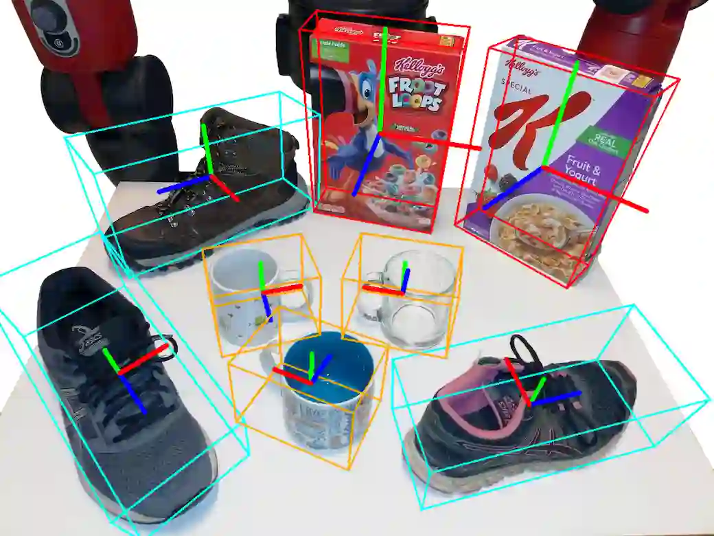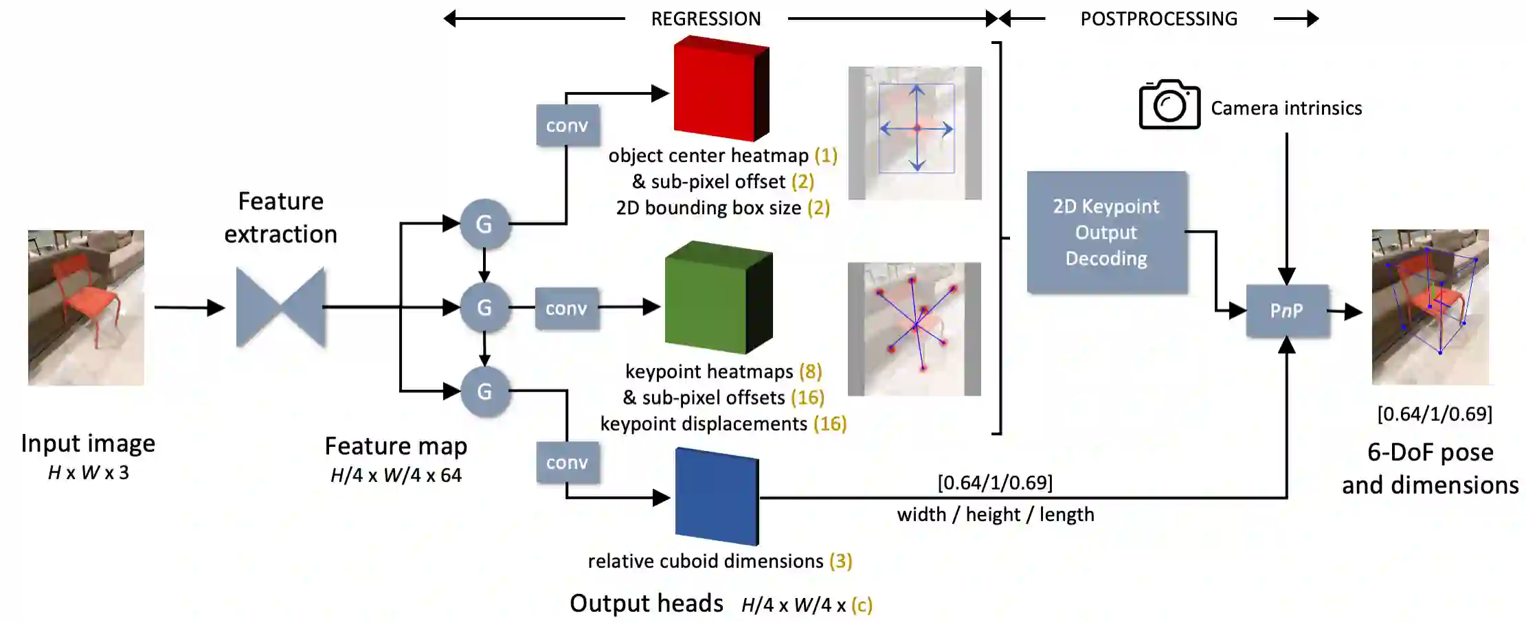 翻译:对6-DoF 对象的先前估计主要侧重于实例级处理,其中每个被检测对象都有一个纹理的 CAD 模型。类别级 6-DoF 的估算是朝着开发在无结构、现实世界情景下运作的机器人视觉系统迈出的重要一步。在这项工作中,我们建议对类别级物体采用单一阶段的、基于关键点的估算方法,该方法在已知的类别内对未知的物体进行操作,使用单一的 RGB 图像作为输入。拟议网络对具有挑战性的天体基准进行2D 检测、检测2D 关键点、估计 6-DoF 构成和反向相对约束幼虫尺寸。这些数量是按顺序估算的,利用最新的 convGRU 理念将信息从较容易的任务传播到较困难的任务传播到较困难的任务。我们赞成我们的设计选择简单性:通用的幼鸟脊椎坐标、单级网络和单级RGB 输入。我们在3D IOU 高的IoU 度指标(27.6%) 和两级比移动Pose- 相关步骤7.1 方法高得多)。