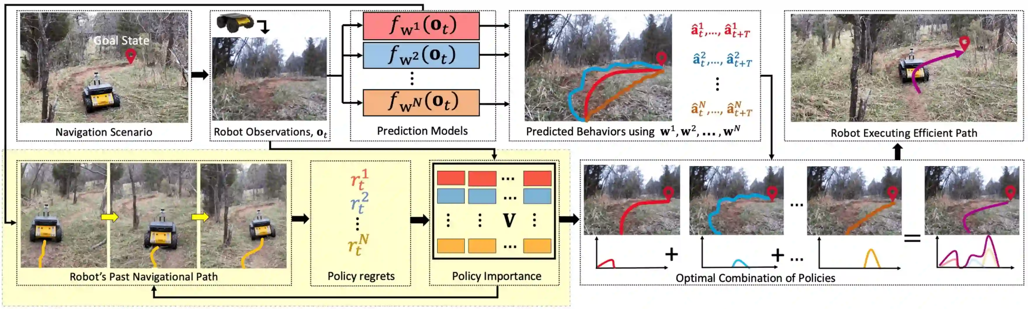 翻译:当机器人在现实世界外的地形上运行时,调整其导航政策的能力对于有效和安全航行至关重要。然而,越野地形给机器人导航带来若干挑战,包括动态障碍和地形不确定性,导致低效率的穿航或航行失败。为了应对这些挑战,我们引入了一种新的调整办法,通过谈判使地面机器人能够调整其导航行为。我们的方法首先学习各种导航政策的预测模型,以便发挥地形观察的联合地方控制器和规划器的作用。然后,通过新的谈判进程,我们的方法从各种政策与环境的互动中学习,以商定将机器人导航调整到非结构的飞地的最佳在线政策组合。此外,我们实施了一种新的优化算法,为机器人在实际执行期间的实时谈判提供了最佳解决方案。实验结果证实,我们通过谈判的适应方法优于以往的机器人导航方法,特别是超视像和不确定的动态地形。