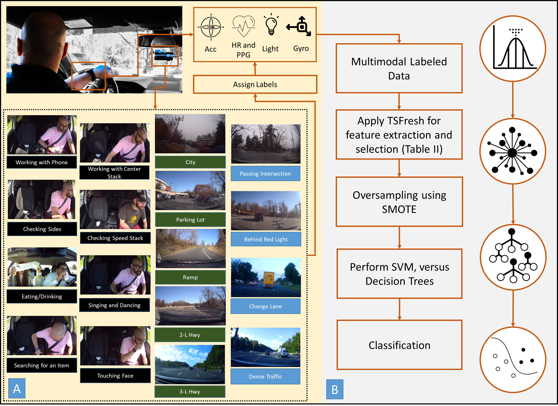 翻译:将驱动器、视网膜内和外部环境的指针整合到车辆的决策中,是半自动车辆安全的核心。已经开发了多种系统,为车辆提供上下文,通常依靠视频流捕捉司机的物理和环境状态。虽然视频流是一个丰富的信息来源,但提供上下文的能力在某些情况下具有挑战性,例如低光度环境(例如夜间驾驶)和高度隐私侵入性。在这项研究中,我们通过智能观察利用被动感应对驾驶环境要素进行分类。具体来说,我们利用自然驾驶研究中15名参与者收集的数据,以及使用随机森林等多机算学习算法,我们将驾驶者活动(例如,使用电话和吃东西)、外部活动(例如,路过交叉和车道变化)和道路外部特征(例如,在城市驾驶和高速公路驾驶,平均为94.55、98.27和97.86 %,通过10倍的交叉估价,我们的成果显示,在真实的驱动力背景下,通过智能的自主性数据回收方式和智能的数据收集工作,在现实的机动性机动性机动性机动性分析中,展示了在可修复的机动性机动性机动性机动性方面,在现实和智能机动性机动性方面,展示中提供了更好的数据收集。我们的成果,展示,在现实和智能机动性分析中,展示中,在可恢复和智能的机动性方面,展示中提供了一种可复制的数据收集。