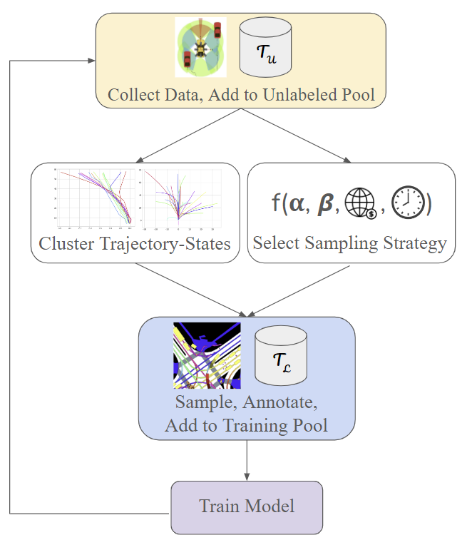 This study investigates the use of trajectory and dynamic state information for efficient data curation in autonomous driving machine learning tasks. We propose methods for clustering trajectory-states and sampling strategies in an active learning framework, aiming to reduce annotation and data costs while maintaining model performance. Our approach leverages trajectory information to guide data selection, promoting diversity in the training data. We demonstrate the effectiveness of our methods on the trajectory prediction task using the nuScenes dataset, showing consistent performance gains over random sampling across different data pool sizes, and even reaching sub-baseline displacement errors at just 50% of the data cost. Our results suggest that sampling typical data initially helps overcome the ''cold start problem,'' while introducing novelty becomes more beneficial as the training pool size increases. By integrating trajectory-state-informed active learning, we demonstrate that more efficient and robust autonomous driving systems are possible and practical using low-cost data curation strategies.