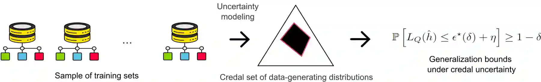 Statistical learning theory is the foundation of machine learning, providing theoretical bounds for the risk of models learnt from a (single) training set, assumed to issue from an unknown probability distribution. In actual deployment, however, the data distribution may (and often does) vary, causing domain adaptation/generalization issues. In this paper we lay the foundations for a `credal' theory of learning, using convex sets of probabilities (credal sets) to model the variability in the data-generating distribution. Such credal sets, we argue, may be inferred from a finite sample of training sets. Bounds are derived for the case of finite hypotheses spaces (both assuming realizability or not) as well as infinite model spaces, which directly generalize classical results.