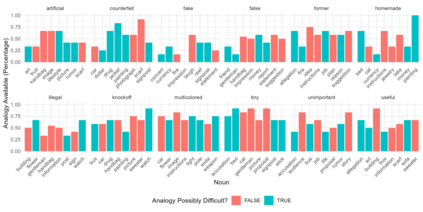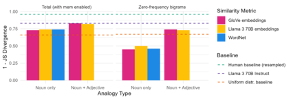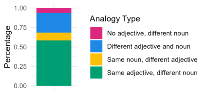 Recent work (Ross et al., 2025, 2024) has argued that the ability of humans and LLMs respectively to generalize to novel adjective-noun combinations shows that they each have access to a compositional mechanism to determine the phrase's meaning and derive inferences. We study whether these inferences can instead be derived by analogy to known inferences, without need for composition. We investigate this by (1) building a model of analogical reasoning using similarity over lexical items, and (2) asking human participants to reason by analogy. While we find that this strategy works well for a large proportion of the dataset of Ross et al. (2025), there are novel combinations for which both humans and LLMs derive convergent inferences but which are not well handled by analogy. We thus conclude that the mechanism humans and LLMs use to generalize in these cases cannot be fully reduced to analogy, and likely involves composition.