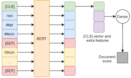 翻译:用于大型文件收集的问答系统通常使用管道:(一) 检索可能相关的文件,(二) 重新排序,(三) 将上层文档的中段或其他片段排位,(四) 选择最上层片段的跨度,作为准确的答案。管道在概念上简单,但错误从一个部分传播到下一个部分,但随后各部分无法修改先前的决定。我们展示了一个联合文件和片段排位的架构,即两个中间阶段,利用相关文件具有良好片段和好片段的直觉,(二) 重新排位,(三) 将最上层文档的中段或其他片段排位排位,(三) 排位阶,(四) 排位阶段,(四) 排位阶段,(四) 以POSIT-DRMMM(PDRMM)(PDRMM)(PD)和以BERT为主列的排位。关于生物数据数据的实验显示,我们的联合模型已大大超越了管道的管道检索, QA的主要目标,(比可保持在文件检索中) QA 。此外,尽管我们使用了比数测试中,但我们的比重数据要求,但测试了我们的数据比重数据比重数据比重数据比重数据,我们的数据比比重在另一个的比重数据,我们更小。