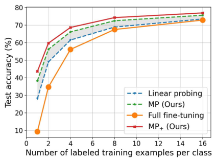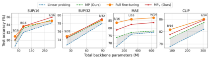 Recently, efficient fine-tuning of large-scale pre-trained models has attracted increasing research interests, where linear probing (LP) as a fundamental module is involved in exploiting the final representations for task-dependent classification. However, most of the existing methods focus on how to effectively introduce a few of learnable parameters, and little work pays attention to the commonly used LP module. In this paper, we propose a novel Moment Probing (MP) method to further explore the potential of LP. Distinguished from LP which builds a linear classification head based on the mean of final features (e.g., word tokens for ViT) or classification tokens, our MP performs a linear classifier on feature distribution, which provides the stronger representation ability by exploiting richer statistical information inherent in features. Specifically, we represent feature distribution by its characteristic function, which is efficiently approximated by using first- and second-order moments of features. Furthermore, we propose a multi-head convolutional cross-covariance (MHC$^3$) to compute second-order moments in an efficient and effective manner. By considering that MP could affect feature learning, we introduce a partially shared module to learn two recalibrating parameters (PSRP) for backbones based on MP, namely MP$_{+}$. Extensive experiments on ten benchmarks using various models show that our MP significantly outperforms LP and is competitive with counterparts at less training cost, while our MP$_{+}$ achieves state-of-the-art performance.