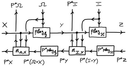 We improve the framework of open games with agency by showing how the players' counterfactual analysis giving rise to Nash equilibria can be described in the dynamics of the game itself (hence diegetically), getting rid of devices such as equilibrium predicates. This new approach overlaps almost completely with the way gradient-based learners are specified and trained. Indeed, we show feedback propagation in games can be seen as reverse-mode differentiation, with a crucial difference explaining the distinctive character of the phenomenology of non-cooperative games. We outline a functorial construction of arena of games, show players form a subsystem over it, and prove that their `fixpoint behaviours' are Nash equilibria.