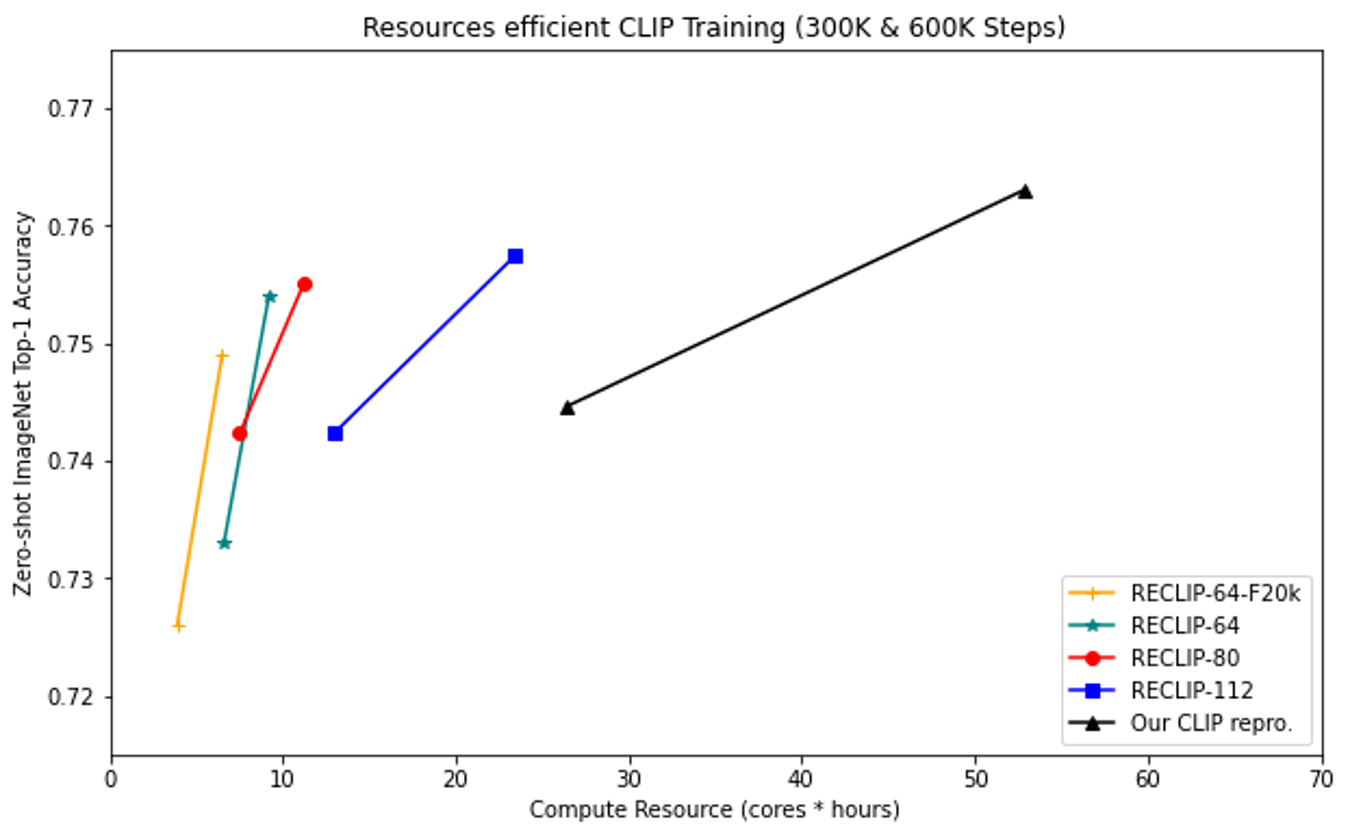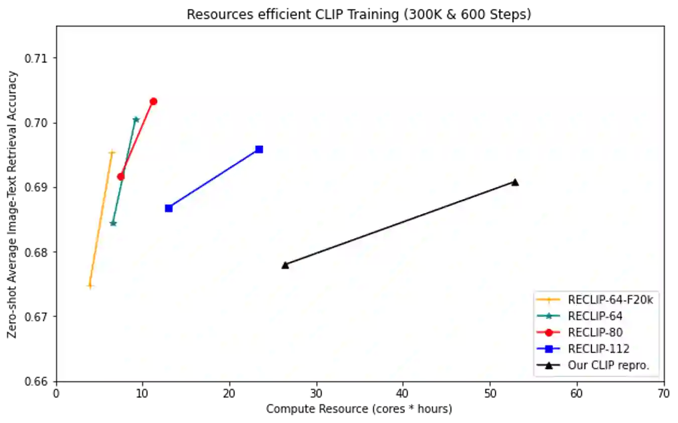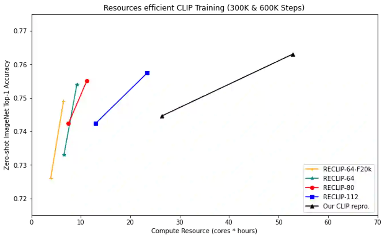 翻译:我们提出了RECLIP(资源高效CLIP),这是一种简单的方法,可以最小化对CLIP(对比语言图像预训练)的计算资源要求。受计算机视觉中粗略到精细的概念启发,我们利用小图像以高效地从大规模语义监督中学习,并最终使用高分辨率数据微调模型。由于视觉变换器的复杂性严重依赖于输入图像的大小,因此我们的方法在理论和实践中都显着降低了训练资源需求。使用相同的批次大小和训练时期,RECLIP以6-8倍的计算资源和7-9倍的FLOPs比基线实现了极具竞争力的零次分类和图像文本检索准确性。与最先进的对比学习方法相比,RECLIP表现出5-59倍的训练资源节省,同时保持极具竞争力的零次分类和检索性能。我们希望这项工作将为更加资源友好的环境下探索语言监督预训练为更广泛的研究社区铺平道路。