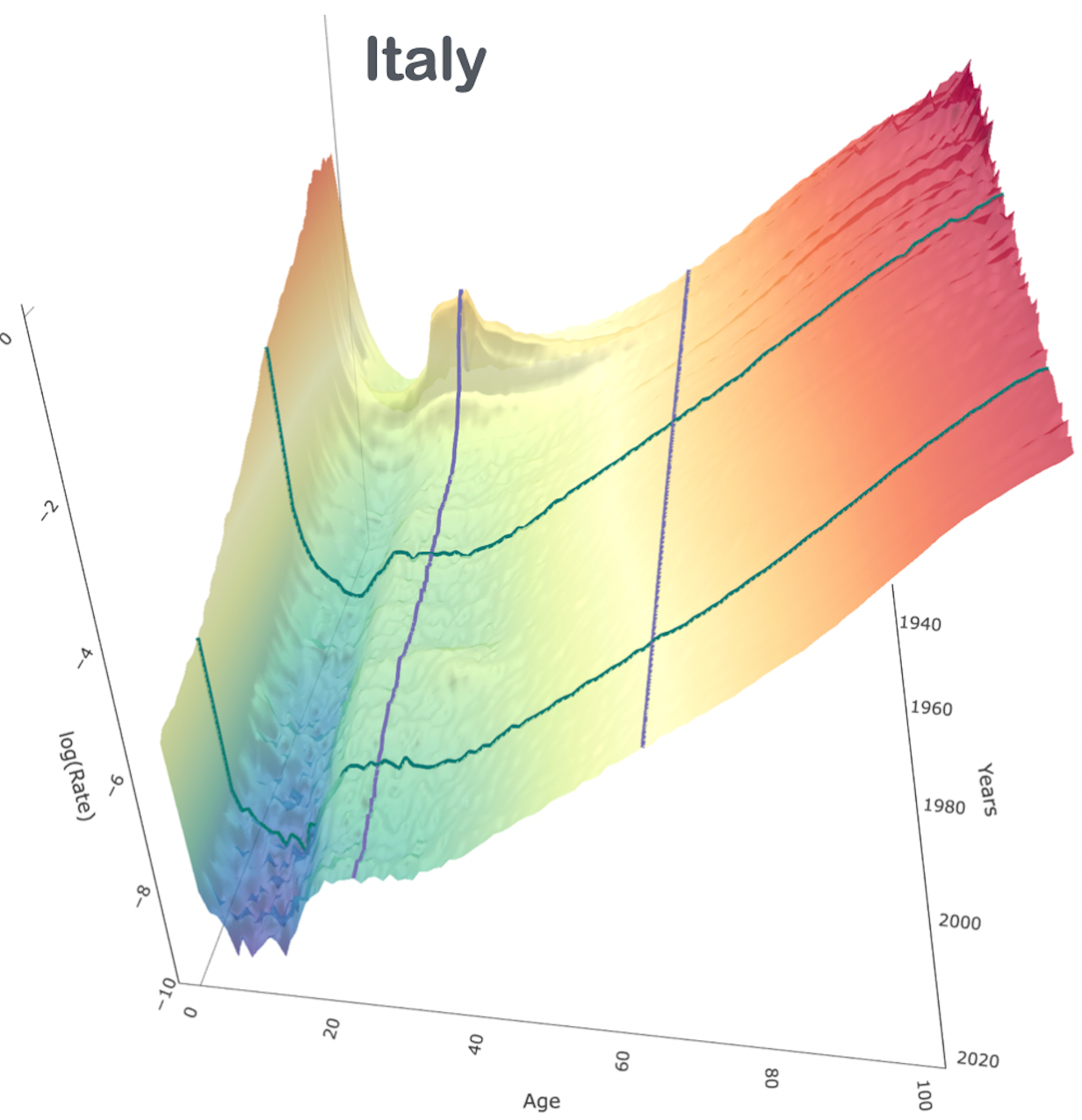 Although the analysis of human mortality has a well-established history, the attempt to accurately forecast future death-rate patterns for different age groups and time horizons still attracts active research. Such a predictive focus has motivated an increasing shift towards more flexible representations of age-specific period mortality trajectories at the cost of reduced interpretability. Although this perspective has led to successful predictive strategies, the inclusion of interpretable structures in modeling of human mortality can be, in fact, beneficial for improving forecasts. We pursue this direction via a novel B-spline process with locally-adaptive dynamic coefficients. Such a process outperforms state-of-the-art forecasting strategies by explicitly incorporating the core structures of period mortality within an interpretable formulation which enables inference on age-specific mortality trends and the corresponding rates of change across time. This is obtained by modeling the age-specific death counts via a Poisson log-normal model parameterized through a linear combination of B-spline bases with dynamic coefficients that characterize time changes in mortality rates via suitable stochastic differential equations. While flexible, the resulting formulation can be accurately approximated by a Gaussian state-space model that facilitates closed-form Kalman filtering, smoothing and forecasting, for both the trends of the spline coefficients and the corresponding first derivatives, which measure rates of change in mortality for different ages. As illustrated in applications to mortality data from different countries, our model outperforms state-of-the-art methods both in point forecasts and in calibration of predictive intervals. Moreover, it unveils substantial differences in mortality patterns across countries and ages, both in the past decades and during the COVID-19 pandemic.