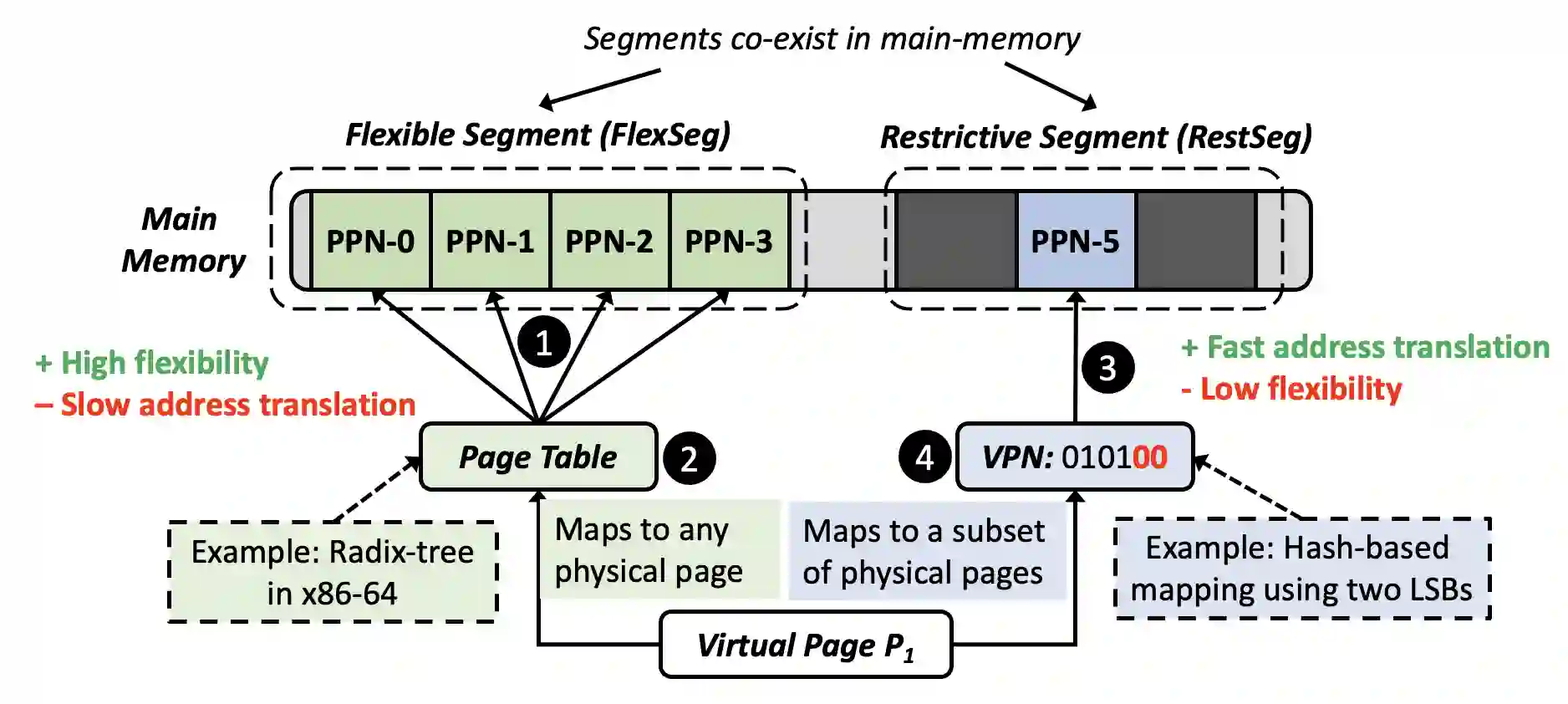 翻译:常规的虚拟到物理地址映射计划使虚拟地址能够灵活地映射到任何物理地址。这种灵活性需要大型数据结构来存储虚拟到物理地图,这需要大量的数据结构来存储虚拟到物理的映射,在记忆层中,特别是在数据密集型工作量中,需要大量高超的地址翻译延缓和翻译干扰。将地址映射限制在仅可映射到一套特定的物理地址的情况下,这样虚拟地址只能映射到一套特定的物理地址中,通过使用压缩和更有效的翻译结构,可以大大减少与传统地址翻译相关的间接费用。但是,限制整个主记忆层的映射灵活性严重限制了不同进程之间的数据共享,并增加了正在使用的记忆。在此工作中,我们提议乌托巴式,一个新的混合虚拟到虚拟的虚拟到物理的地址映射计划,允许在单一的虚拟到快速的地址上进行灵活和快速的地址转换。 乌托巴式的关键思想是使用两种类型的物理记忆区块来管理与常规的缩略图部分,通过常规的缩略图向11个图像进行类似的缩图。