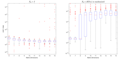 翻译:我们提出三种迭代方法来解决摩瑟-维斯洛夫等式,这三种方法产生于关于通用僵硬体运动的欧勒-阿诺尔德差分方程式的分解。我们首先将问题作为正方形限制的优化问题提出,并证明客观功能是二次曲线。然后,利用在里伊曼尼方形上的优化技术,设计出三种可行的算法。第一种是使用布雷格曼法分割正方形限制,而其他两种方法则是最陡峭的白种。第二种是使用凯利变形法来保持限制和巴齐莱-波尔文级大小,而第三个方法则涉及大地测量学,而阿尔米乔规则则计算了分级大小。最后,进行了一系列数字实验,以比较拟议算法的性能,表明第一个算法在准确性和迭代数方面表现最佳。这些迭代法的一个基本优点是,即使在现有直接方法的适用性条件不令人满意的情况下,它们仍然起作用。