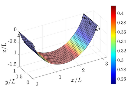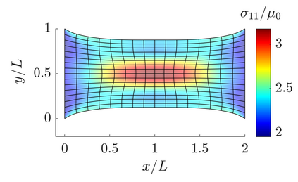 翻译:这项工作提出了一种有限元素模型,更新了基于高效的异构贝壳配方的多元材料分布的反向重建方法,它使用一种非线性材料模型,具有超弹性不压缩的Neo-Hookean膜部分和Canham弯曲部分。材料分布由线性元素分解,因此节点值是有待确定的设计变量。独立的FE和材料分解,以及实验数据的灵活整合,提供了高强度和控制。三种基本测试案例,显示出巨大的变形和不同的挑战,被考虑为:非轴性紧张、纯弯曲和表膨胀;高分辨率模拟产生类似实验的结果,随后添加了4%的噪音;采用了基于信任区域方法的局部优化;结果显示,如果进行足够数量的实验测量,算法能够非常精确地重建材料分布,即使存在大噪音。提议的配方十分笼统,有助于将其推广到其他材料模型和优化算法。对于后者,则提供了分析得出的敏感度。