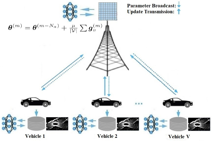 翻译:毫米波(mmWave)通信系统的有效连接配置是一项关键但具有挑战性的任务,因为光束选择对网络性能造成管理费用。对于车辆到基础设施(V2I)网络来说,安装在车辆上的LIDAR传感器的侧边信息已被利用来减少光束搜索管理费用。我们在信中提议利用联合培训,为V2ImmWave通信系统分发LIDAR辅助光束选择。在拟议计划中,连接车辆在系统正常运行期间合作对共享神经网络进行当地可用的LIDAR数据的培训。我们还提议采用另一种降低复合性NNN(CNN)结构和LIDAR预处理方法,这在性能和复杂性方面大大超过以往的工作。
