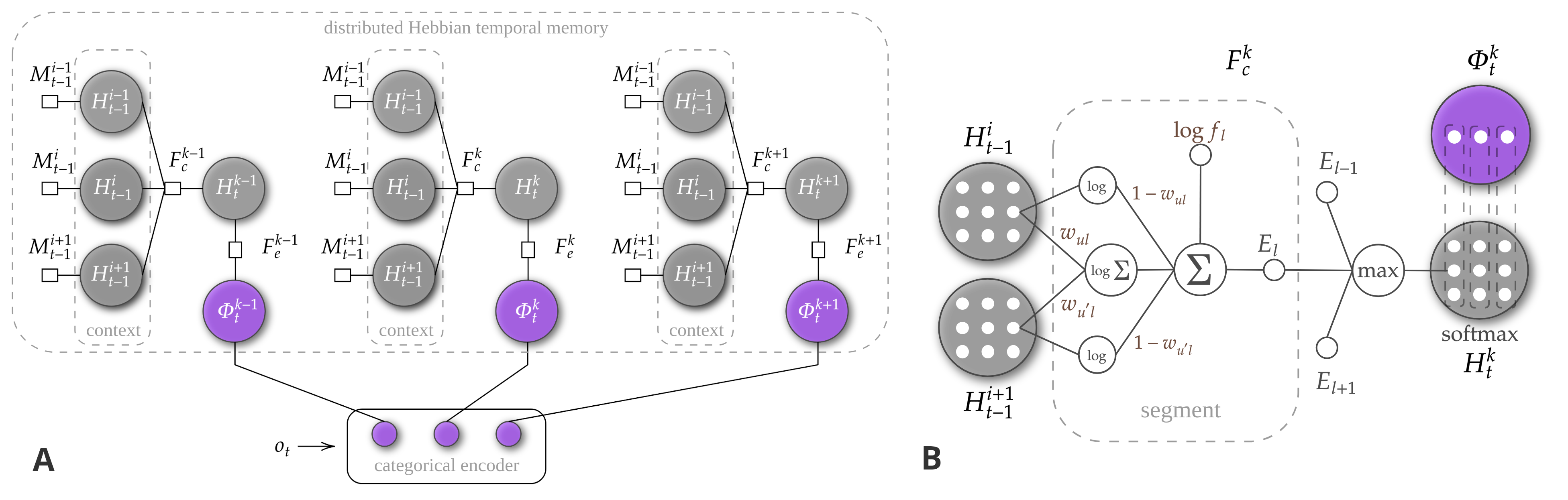 This paper presents a novel approach to address the challenge of online temporal memory learning for decision-making under uncertainty in non-stationary, partially observable environments. The proposed algorithm, Distributed Hebbian Temporal Memory (DHTM), is based on factor graph formalism and a multicomponent neuron model. DHTM aims to capture sequential data relationships and make cumulative predictions about future observations, forming Successor Features (SF). Inspired by neurophysiological models of the neocortex, the algorithm utilizes distributed representations, sparse transition matrices, and local Hebbian-like learning rules to overcome the instability and slow learning process of traditional temporal memory algorithms like RNN and HMM. Experimental results demonstrate that DHTM outperforms LSTM and a biologically inspired HMM-like algorithm, CSCG, in the case of non-stationary datasets. Our findings suggest that DHTM is a promising approach for addressing the challenges of online sequence learning and planning in dynamic environments.