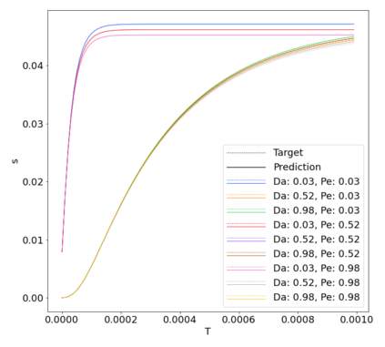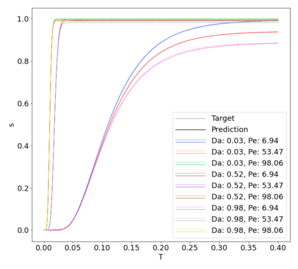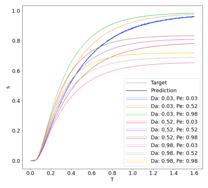 翻译:反应性流动是许多技术和环境过程的重要组成部分。通常,监测该区域内的流量和物种浓度是不可能的,或者费用昂贵,相反,出口集中是直接测量的。关于多孔介质的被动流动,使用“突破曲线”一词来表示出口集中的时间依赖性和入口处规定的条件。在这项工作中,我们运用了几种机器学习方法来预测特定参数组的突破曲线。在我们的案例中,参数是Damk\'ohler和Peclet数字。我们对一维情况进行了彻底分析,并为三维情况提供了结果。
