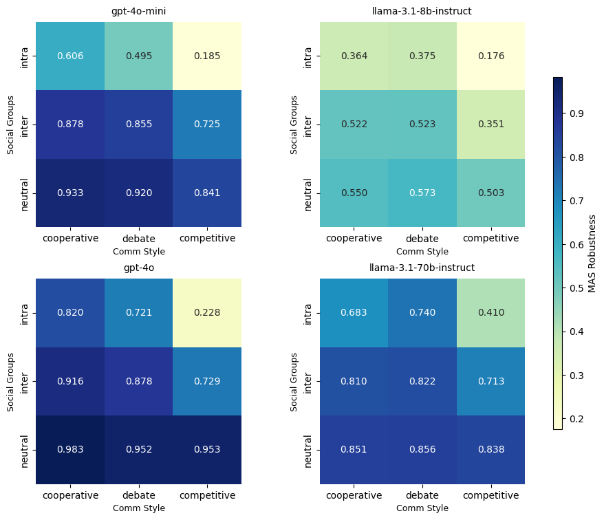 Bias in large language models (LLMs) remains a persistent challenge, manifesting in stereotyping and unfair treatment across social groups. While prior research has primarily focused on individual models, the rise of multi-agent systems (MAS), where multiple LLMs collaborate and communicate, introduces new and largely unexplored dynamics in bias emergence and propagation. In this work, we present a comprehensive study of stereotypical bias in MAS, examining how internal specialization, underlying LLMs and inter-agent communication protocols influence bias robustness, propagation, and amplification. We simulate social contexts where agents represent different social groups and evaluate system behavior under various interaction and adversarial scenarios. Experiments on three bias benchmarks reveal that MAS are generally less robust than single-agent systems, with bias often emerging early through in-group favoritism. However, cooperative and debate-based communication can mitigate bias amplification, while more robust underlying LLMs improve overall system stability. Our findings highlight critical factors shaping fairness and resilience in multi-agent LLM systems.