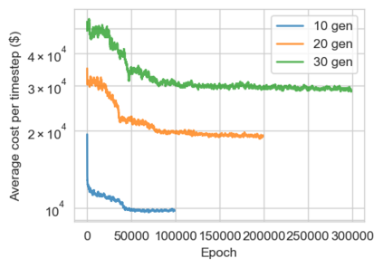翻译:单位承诺(UC)问题决定了发电单位的运行时间表以满足需求,这是电力系统运作的一项根本任务。使用混合整数编程的现有UC方法不适宜于高度随机化系统。更严格地说明不确定性的方法可以通过减少旋转储备需求而大幅降低运营成本;运行电站效率更高;整合更多可变可再生能源。解决UC问题的一个有希望的方法是强化学习(RL),这是最佳决策的一种方法,用来克服人工智能中长期存在的重大挑战。这个理论探讨了RL对UC问题的应用,并解决了挑战,包括稳健的不确定性;跨多个问题案例的通用性;以及扩大电力系统规模。为了解决这些问题,我们开发了有指导的树木搜索方法,将无模式的RL和基于模型的规划结合起来。UC问题被正规化为Markov决策程序,我们根据来自英国电力系统的真实数据开发了开放源环境来培训RL代理。当人们认为RL对UC问题进行了应用时,相对于稳健的UC问题,在多个问题中比较稳妥性成本,在操作成本方面,在操作成本方面,以透明操作成本方面,以稳定为核心的操作法,在操作成本框架中可以确定重要的RBIL的操作成本框架之外的操作方法,在降低成本的操作成本框架。通过重要的常规成本框架。在降低中,通过重要的操作成本的操作成本的操作成本的简化中,可以被演示,在降低成本的操作成本框架中进行到重要研究。