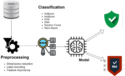 翻译:在当今世界,互联网几乎到处都在使用。随着IoT技术的兴起(IoT技术是使用最多的技术之一),数十亿IoT设备在互联网上相互连接。然而,DOS/DDoS攻击是对这一不断增长的技术最经常和最危险的威胁。新的DDoS攻击类型是高度先进和复杂的,几乎不可能通过现有的入侵探测系统和传统方法探测或减轻。幸运的是,大数据、数据挖掘和机器学习技术使得能够有效检测DDoS的流量。本文建议了基于数据挖掘和机器学习技术的DDoS探测模型。为撰写本文,现有的最新数据集,CICDDoS-2019,以最受欢迎的机器学习算法进行了实验,并具体说明了与预测的类别最相关的特征。发现AdaBoost和XGBoost非常准确和正确地预测了100%的网络流量类型。未来研究可以通过加强不同DOS攻击类型多级的模型以及测试该模型的混合算法和新数据集来扩展。