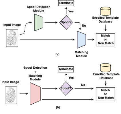 翻译:典型的指纹识别系统由一个假检测模块和随后的识别模块组成,一个又一个。在本文中,我们重新定义典型指纹识别系统的运行方式。特别是,我们假定,假检测和指纹识别都是相关的任务。因此,我们不单独执行这两项任务,而是提议一个假检测和匹配的联合模式,以同时执行两项任务,同时不影响任一任务的准确性。我们展示了我们联合模型的能力,以获得TAR=100%的认证准确度(1:1匹配)的TAR=100%@FAR=FC 2006 DB2A数据集的0.1%,同时在LiveDet 2015数据集中实现1.44%的假检测ACE,同时保持独立方法的性能。在实践中,这将将指纹识别系统的时间和记忆要求分别减少50%和40%;在资源受限制的装置和通信频道上运行的识别系统有很大优势。我们工作的项目网页见https://www.bit.ly/ijc2021-unificed。