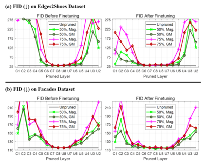翻译:有效压缩压压超分化模型。 尽管对歧视模型的修剪方法非常成功, 但相对而言很少采用这些方法来应用基因模型。 本研究对有条件GANs的 U-Net 生成器进行结构化的修剪。 一次层次敏感度分析证实,在瓶颈附近的最深层存在许多不必要的过滤器, 并且可以大量修剪。 基于这一观察, 我们将这些过滤器从多个内部层中提取出来, 或者通过完全清除这些层来建议替代结构。 我们用 Pix2Pix 来评估图像到模拟翻译的方法, 和用Wav2Lip 来评估语音驱动的面部话语生成的方法。 我们的方法优于全球修剪基准, 表明适当考虑如何为 U- Net 生成器进行普鲁纳的重要性 。
