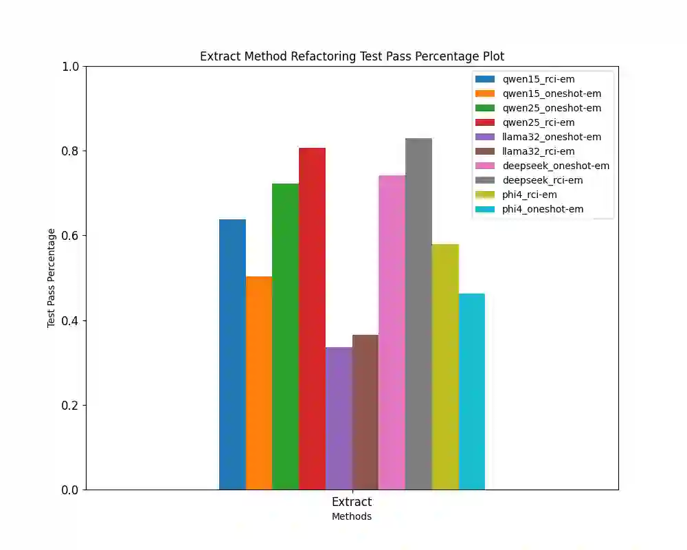 翻译:尽管提取方法重构(EMR)对于提升代码可读性和可维护性至关重要,但其自动化实现仍面临挑战,目前主要依赖人工操作。近期,资源高效的开源大语言模型(LLMs)的进展为自动化此类高级任务提供了前景广阔的新途径。本研究针对Python代码的EMR任务,对五种参数规模从30亿到80亿不等的先进开源LLMs进行了批判性评估。我们采用自动化指标系统评估了功能正确性与代码质量,并通过比较单次提示与递归批评与改进(RCI)方法,探究了提示策略的影响。基于RCI的提示方法在测试通过率和重构质量方面持续优于单次提示。表现最佳的模型Deepseek-Coder-RCI和Qwen2.5-Coder-RCI分别实现了0.829和0.808的测试通过百分比(TPP)得分,同时将每个方法的代码行数(LOC)从12.103分别降低至6.192和5.577,圈复杂度(CC)从4.602分别降至3.453和3.294。针对RCI生成重构的开发者调查显示超过70%的接受度,其中Qwen2.5-Coder在所有评估标准中评分最高。相比之下,原始代码的评分低于中性水平,特别是在可读性和可维护性方面,这凸显了基于高质量提示的自动化重构的优势。虽然传统指标如CC和LOC能提供有效参考,但它们常与人工判断存在偏差,强调了人在环评估的必要性。我们开源的基准测试为未来基于LLMs的自动化重构研究奠定了基础。