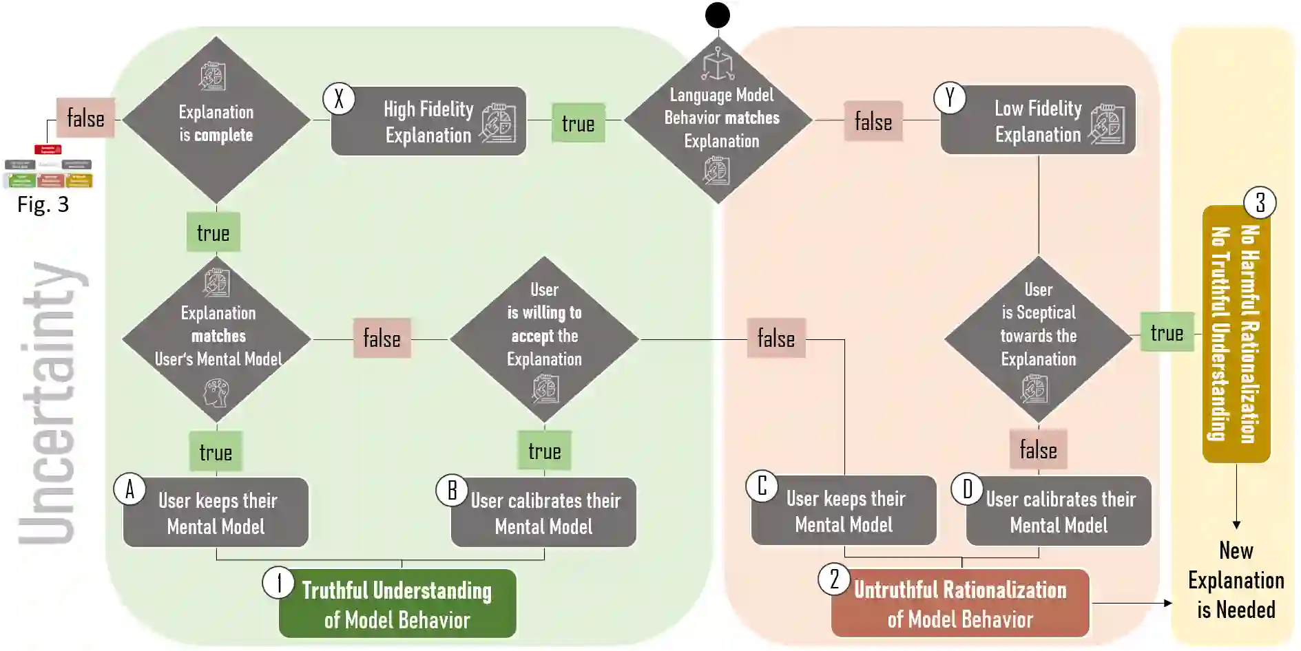 翻译:语言模型与人学习和代表的语言不同;语言模型与人不同;语言模型学习形式而不是含义。因此,为了评估语言模型解释成功与否,我们需要考虑其与用户精神语言模型差异的影响。在本立场文件中,我们主张,为了避免有害的合理化,实现对语言模型的真诚理解,解释程序必须满足三个主要条件:(1) 解释必须真实地代表模式行为,即高度忠诚;(2) 解释必须完整,因为缺失的信息扭曲了事实;(3) 解释必须考虑到用户的精神模型,逐步核实一个人的知识并调整他们的理解。我们引入了决策树模型,以展示当前解释未能实现其目标的潜在原因。我们进一步强调,需要以人为本的设计从多种角度解释模型,逐步调整解释,以适应用户不断变化的期望。