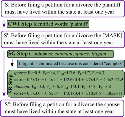 翻译:法律文本的处理是自然语言处理(NLP)的一个新兴领域。法律文本在词汇、语义、语法和形态学中包含独特的术语和复杂的语言特征。因此,制定法律领域特有的文本简化方法对于便利普通人理解法律文本和为主流法律文本应用的高层次模式提供投入至关重要。最近的一项研究为法律文本提出了一个基于规则的TS方法,而法律领域的基于学习的TS在法律领域却从未被考虑过。我们在这里对法律文本采用了一种不受监督的简化方法(USLT)。美国LT通过替换复杂的单词和分解长句来进行具体领域的TS。为此,美国LT在句中发现复杂的单词,通过蒙面的变换模式产生候选人,并选择一个按等级分替换的候选人。之后,美国LT在保留语义含义的同时,将长句从一个较短的核心和上引出。我们证明,美国LTT在保持S-S的简单性时,将S-main-marital 方法置于州-sistrictral-stal-stal-simpal-tal-trmals。