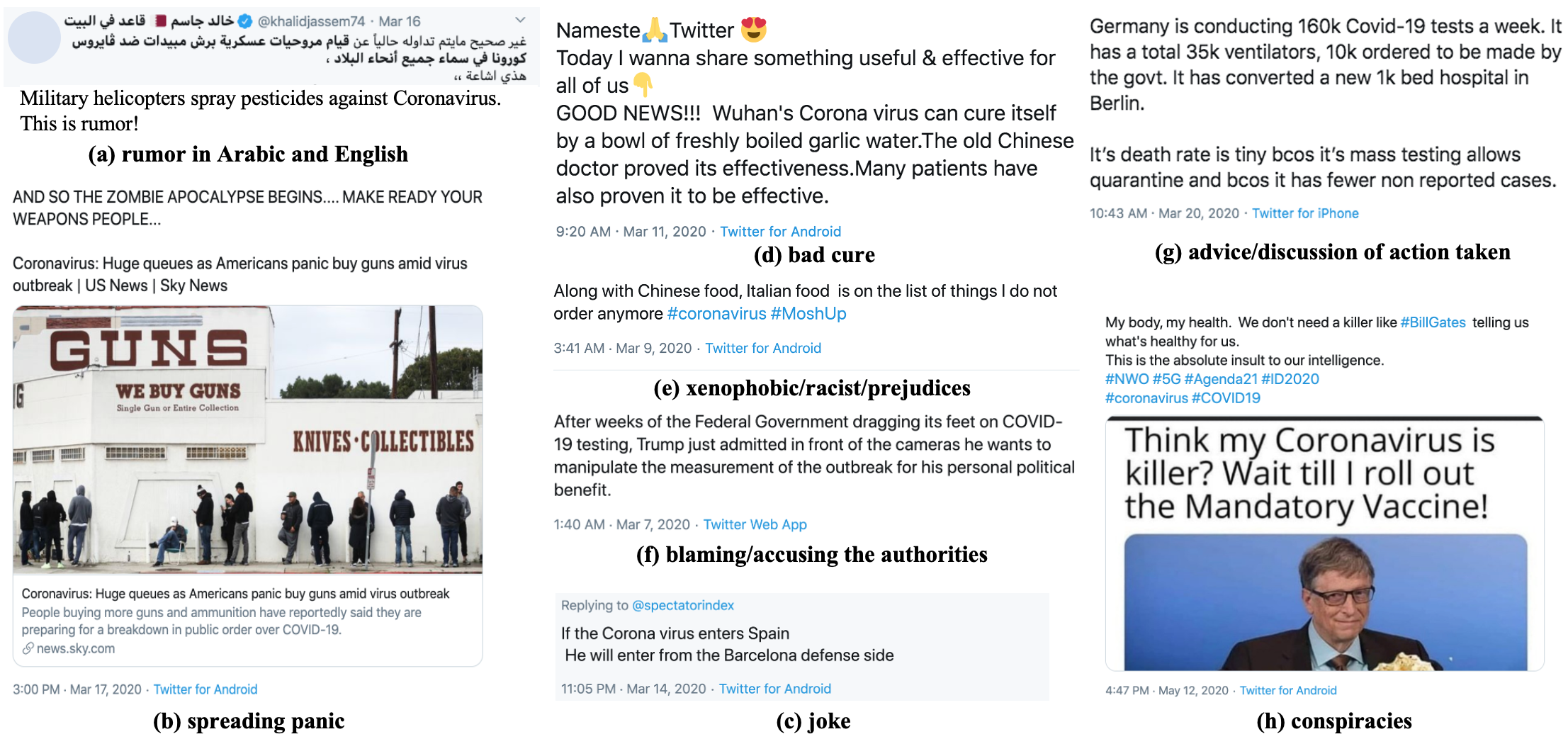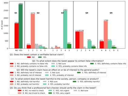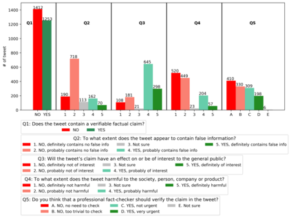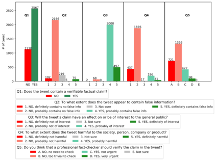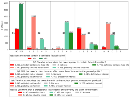 翻译:随着COVID-19大流行的出现,随着问题升级到一个全新的水平,假信息的政治和医学方面合在一起,成为第一个全球流行的焦点。对付这种假信息被宣布为世界卫生组织最重要的重点领域之一,其危险包括推广假疗法、谣言和阴谋理论,以传播仇外心理和恐慌。解决这个问题需要解决一些具有挑战性的问题,例如查明含有主张的信息,确定它们是否可靠和真实,它们有可能造成伤害,以及这种伤害的性质,仅举几个例子。为了弥补这一差距,我们发布了16K的大型数据集,我们用人工制作了16K的附加注释的推文,用于精细的虚假信息分析:(一) 侧重于COVID-19,(二) 将记者、事实检查者、社会媒体平台、决策者和社会的观点和利益结合起来,以及(三) 涵盖阿拉伯语、保加利亚语、荷兰语和英语。最后,我们用经过预先培训的变换者展示了强有力的评价结果,从而证实了单语对多语言、语言和单项任务设置的实用性。