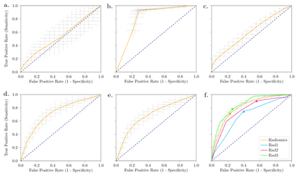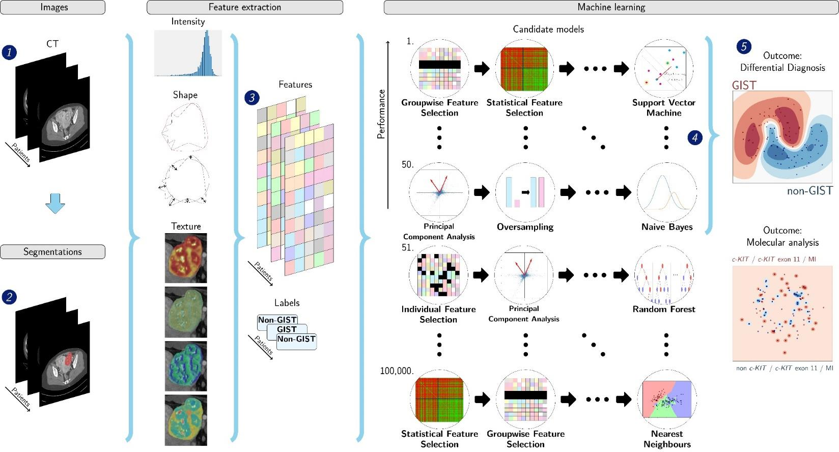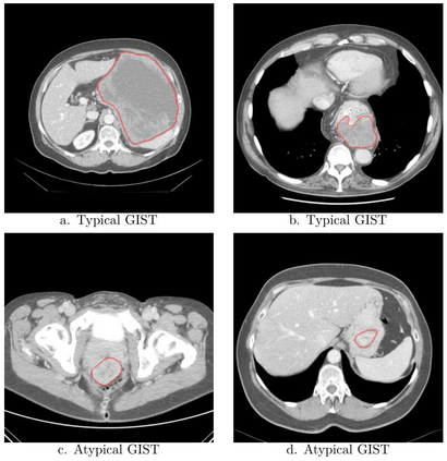 翻译:将胃肠癌从其他腹内肿瘤和GIST分子分析中区别开来,对于治疗规划来说是必要的,但由于其罕见性而具有挑战性。这项研究的目的是评估辐射学,以区分GIST与其他腹内肿瘤,以及GIST,预测C-KIT、PDGFRA、BRAF突变状态和线性指数(MI)。所有247人中包括病人(125 GISTS、122 非GISTs)经历了对比增强的静脉CT阶段。GIST与非GIST放射性模型,包括成像、年龄、性别和位置,在0.82的曲线下有一个平均区域(AUSC),3名放射学家拥有0.69、0.76和0.84的AUC,放射学模型有0.52的CUC,C-KIT Exon 11的0.56,以及MI的0.52。因此,我们的辐射学模型能够将GIST与非光学或MITS的性能与3的预测性能与MIT相比。