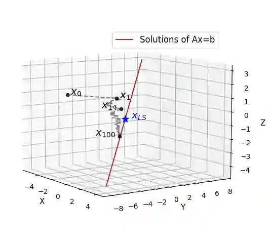 翻译:随机Kaczmarz(RK)算法是求解大规模线性系统时计算与内存效率最高的迭代算法之一。然而,实际应用常涉及含噪声且可能不相容的线性系统。尽管RK算法在相容系统中的收敛性已得到充分研究,但其在含噪声不相容线性系统上的性能分析仍较为有限。本文研究了RK算法在求解含噪声不相容系统时期望意义下迭代序列的渐近行为,重点探讨其极限点的分布位置。我们分析了(含噪声)系数矩阵奇异向量的作用,并推导了收敛区域的边界,该边界取决于噪声水平与系统特性。最后,我们通过大量数值实验验证了理论结论,为算法在实际条件下的性能表现提供了实用见解。这些研究成果深化了对RK算法在噪声环境中的局限性及鲁棒性的理解,为优化其在实际科学与工程问题中的应用奠定了基础。