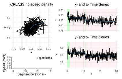 In this work, we introduce CPLASS (Continuous Piecewise-Linear Approximation via Stochastic Search), an algorithm for detecting changes in velocity within multidimensional data. The one-dimensional version of this problem is known as the change-in-slope problem (see Fearnhead & Grose (2022), Baranowski et al. (2019)). Unlike traditional changepoint detection methods that focus on changes in mean, detecting changes in velocity requires a specialized approach due to continuity constraints and parameter dependencies, which frustrate popular algorithms like binary segmentation and dynamic programming. To overcome these difficulties, we introduce a specialized penalty function to balance improvements in likelihood due to model complexity, and a Markov Chain Monte Carlo (MCMC)-based approach with tailored proposal mechanisms for efficient parameter exploration. Our method is particularly suited for analyzing intracellular transport data, where the multidimensional trajectories of microscale cargo are driven by teams of molecular motors that undergo complex biophysical transitions. To ensure biophysical realism in the results, we introduce a speed penalty that discourages overfitted of short noisy segments while maintaining consistency in the large-sample limit. Additionally, we introduce a summary statistic called the Cumulative Speed Allocation, which is robust with respect to idiosyncracies of changepoint detection while maintaining the ability to discriminate between biophysically distinct populations.