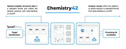 Chemistry42 is a software platform for de novo small molecule design that integrates Artificial Intelligence (AI) techniques with computational and medicinal chemistry methods. Chemistry42 is unique in its ability to generate novel molecular structures with predefined properties validated through in vitro and in vivo studies. Chemistry42 is a core component of Insilico Medicine Pharma.ai drug discovery suite that also includes target discovery and multi-omics data analysis (PandaOmics) and clinical trial outcomes predictions (InClinico).
