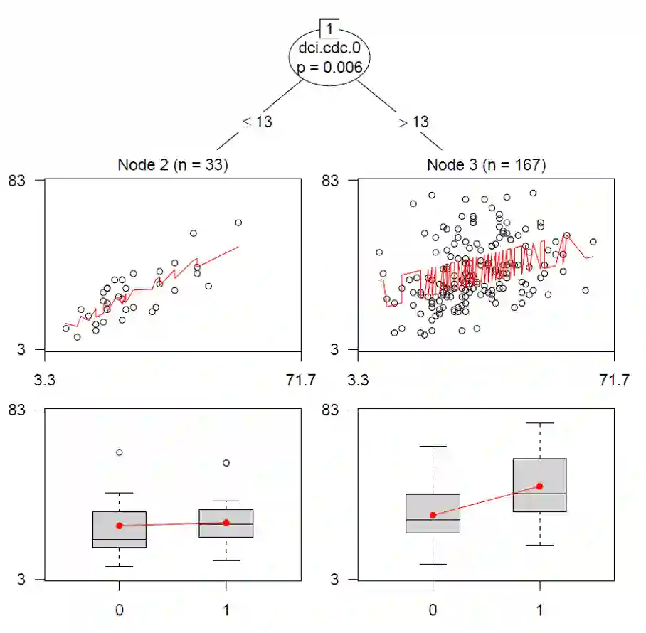 翻译:在这项研究中,我们开发并内部验证了一个可变决定树模型,预测基于互联网的治疗对基于互联网的症状的多维综合分数的影响。然而,对于所有最先进的治疗,仍然普遍地存在不反应的现象,而且不清楚预计哪些患者群体将从基于互联网的干预中受益最大。多变量预测模型越来越多地用于确定不同治疗效果的预测值,并分配出最大预期效益的治疗。在这个研究中,我们开发并内部验证了一个可变决定树模型,预测基于互联网的治疗对基于互联网的GPPPD症状的多维综合分数分数的影响。但是,将基于互联网的干预与基于互联网的控制组(N=200)进行随机对照试验的数据,用于使用基于模型的循环隔断层模型开发一个决定树模型。模型的性能通过对表面和靴带偏差模型的纠正性能进行评估。最后的确定树包括一个分解变量,即联合对基于两个响应组的硬度值为美元。(在两个响应组上发现,直径值为95-R=0.33;对低的病人的直径直径直径直径值为95=0.48=0.33。</s>