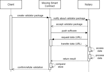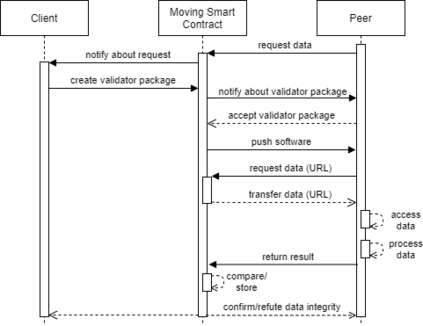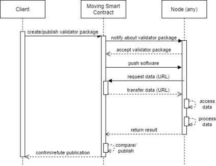 Blockchains provide environments where parties can interact transparently and securely peer-to-peer without needing a trusted third party. Parties can trust the integrity and correctness of transactions and the verifiable execution of binary code on the blockchain (smart contracts) inside the system. Including information from outside of the blockchain remains challenging. A challenge is data privacy. In a public system, shared data becomes public and, coming from a single source, often lacks credibility. A private system gives the parties control over their data and sources but trades in positive aspects as transparency. Often, not the data itself is the most critical information but the result of a computation performed on it. An example is research data certification. To keep data private but still prove data provenance, researchers can store a hash value of that data on the blockchain. This hash value is either calculated locally on private data without the chance for validation or is calculated on the blockchain, meaning that data must be published and stored on the blockchain -- a problem of the overall data amount stored on and distributed with the ledger. A system we called moving smart contracts bypasses this problem: Data remain local, but trusted nodes can access them and execute trusted smart contract code stored on the blockchain. This method avoids the system-wide distribution of research data and makes it accessible and verifiable with trusted software.