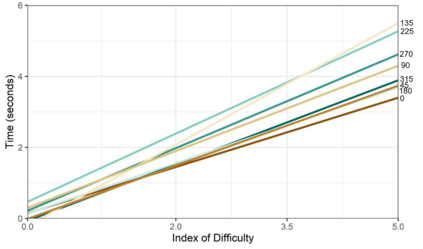 翻译:目标:在进行视觉障碍心理运动定向任务时,对相机观点的影响进行了研究。背景:对乳房镜检查和机器人远程操作的以往研究发现,与偏差观点相关的复杂感知运动适应与操纵性表现的下降相对应。由于在限制环境中往往无法获得最佳摄像定位,因此可能减轻性能影响的替代观点并不明显。方法:虚拟键盘控制的目标定位任务被远程分配给亚马逊机械土耳其的工人。实验由192个主题进行,以静态观点为独立的目标方向参数、Fitts法律难度指数、观点对立角度(AAAA)和极地角度(PA)进行。动态视角实验也由112个主题进行,在每次试验后,观点对AAA进行了调整,目标方向对降低性能效果产生了显著影响。 移动时间和旅行距离被扩大,直到180 方向的运行情况得到不同程度的改善。 AAA从225 (deg) 到315 (deg) 线性移动时间和距离下降。当前AAA和视觉观点的主要效果,在每次试验后,对动态选择性选择结果的稳定性调整不会影响。