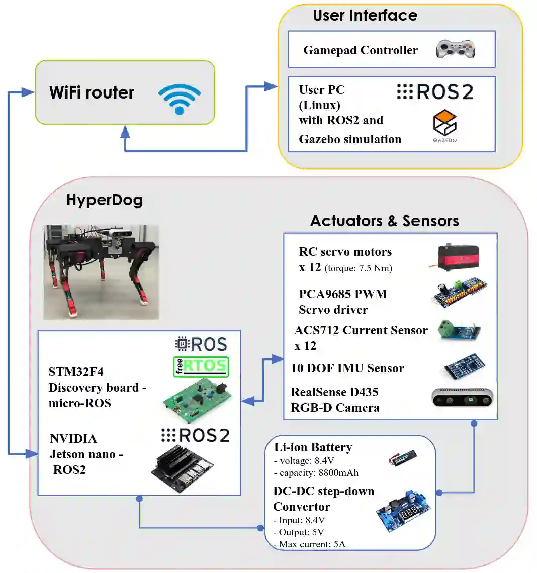翻译:目前,四重腿机器人的设计和开发是一个相当活跃的科学研究领域。事实上,双腿机器人由于能够与其他移动机器人相比适应严酷的地形和不同环境条件而成为受欢迎的对象。随着对腿式机器人实验的需求增加,更多的研究和工程师需要一种负担得起和快速的移动算法开发方法。在本文中,我们展示了一个新的开放源的四重机械机器人超音速机器人平台,该平台有12个RC Servo发动机,在NVIDIA Jetson Nam 计算机和STM32F4 Discovery Board上。超声器是四重机械软件开发的开放源平台,基于2号机器人操作系统(ROS2)和微型ROS。此外,超声器是一种四重机器人狗,完全由3D印刷部件和碳纤维组成,使机器人能够有轻重和强力。这项工作的目的是展示一种负担得起和可定制的机器人开发方式,并向研究人员和工程师提供脚式机器人开发的脚式机器人平台。超音机是一个开源平台,其基础是基于2号操作系统操作系统(ROSO2) 和微机机机能测试和模拟项目。