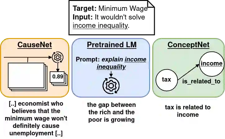 翻译:标准检测涉及确定作者对目标的立场,并应用于社交媒体和新闻等多个文本领域。在许多情况下,由于无法充分获取背景信息,推断立场具有挑战性。在知识库中可以找到补充背景,但由于其图形结构,将背景纳入预先培训的语言模型并非三边模式。相反,我们探索一种方法,将背景信息整合为与变异结构更加一致的文本。具体地说,我们培训了一种由双编码器组成的模型,通过交叉注意交流信息。这一结构可以整合来自不同来源的背景信息。我们评估了从结构化知识来源和从促进大型语言模型中获取的背景。我们的方法能够超越大型和多种定位检测基准的竞争基线(平均为1.9pp),这些基准是:(1) 内部的,即对可见目标而言,和(2) 外部的,即对培训过程中看不见的目标而言。我们的分析表明,它能够使标签与具体指标的提示词的虚假相关性正规化。