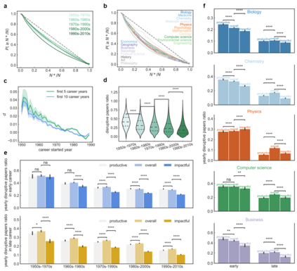 Despite persistent efforts to understand the dynamics of creativity of scientists over careers in terms of productivity, impact, and prize, little is known about the dynamics of scientists' disruptive efforts that affect individual academic careers and drive scientific advance. Drawing on millions of data over six decades and across nineteen disciplines, associating the publication records of individual scientists with the disruption index, we systematically quantify the temporal pattern of disruptive ideas over individual scientific careers, providing a detailed understanding of the macro phenomenon of scientific stagnation from the individual perspective. We start by checking the relationship between disruption-based and citation-based publication profiles. Next, we observe the finite inequality in the disruptive productivity of scientists, diminishing gradually as the level of disruption increases. We then identify the initial burst phenomenon in disruption dynamics. It is further revealed that while early engagement in high disruption frictions away initial productivity, compared to initial advantage in productivity or impact, initial high disruption ensures more subsequent academic viability evidenced by a longer career span and relatively final higher productivity, but does not necessarily guarantee academic success throughout careers. Further analysis shows that increasing disruptive work is uncorrelated to overall productivity but negatively correlated with the overall impact. However, increasing disruptive work in the early career is associated with higher overall productivity, yet lower overall productivity in the later career. Our research underscores the urgent need for a policy shift that encourages a balance between the pursuit of disruptive efforts and the achievement of impactful outcomes.