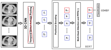 We present an automatic COVID1-19 diagnosis framework from lung CT-scan slice images. In this framework, the slice images of a CT-scan volume are first proprocessed using segmentation techniques to filter out images of closed lung, and to remove the useless background. Then a resampling method is used to select one or multiple sets of a fixed number of slice images for training and validation. A 3D CNN network with BERT is used to classify this set of selected slice images. In this network, an embedding feature is also extracted. In cases where there are more than one set of slice images in a volume, the features of all sets are extracted and pooled into a global feature vector for the whole CT-scan volume. A simple multiple-layer perceptron (MLP) network is used to further classify the aggregated feature vector. The models are trained and evaluated on the provided training and validation datasets. On the validation dataset, the accuracy is 0.9278 and the F1 score is 0.9261.