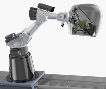 In motion simulation, motion cueing algorithms are used for the trajectory planning of the motion simulator platform, where workspace limitations prevent direct reproduction of reference trajectories. Strategies such as motion washout, which return the platform to its center, are crucial in these settings. For serial robotic MSPs with highly nonlinear workspaces, it is essential to maximize the efficient utilization of the MSPs kinematic and dynamic capabilities. Traditional approaches, including classical washout filtering and linear model predictive control, fail to consider platform-specific, nonlinear properties, while nonlinear model predictive control, though comprehensive, imposes high computational demands that hinder real-time, pilot-in-the-loop application without further simplification. To overcome these limitations, we introduce a novel approach using deep reinforcement learning for motion cueing, demonstrated here for the first time in a 6-degree-of-freedom setting with full consideration of the MSPs kinematic nonlinearities. Previous work by the authors successfully demonstrated the application of DRL to a simplified 2-DOF setup, which did not consider kinematic or dynamic constraints. This approach has been extended to all 6 DOF by incorporating a complete kinematic model of the MSP into the algorithm, a crucial step for enabling its application on a real motion simulator. The training of the DRL-MCA is based on Proximal Policy Optimization in an actor-critic implementation combined with an automated hyperparameter optimization. After detailing the necessary training framework and the algorithm itself, we provide a comprehensive validation, demonstrating that the DRL MCA achieves competitive performance against established algorithms. Moreover, it generates feasible trajectories by respecting all system constraints and meets all real-time requirements with low...