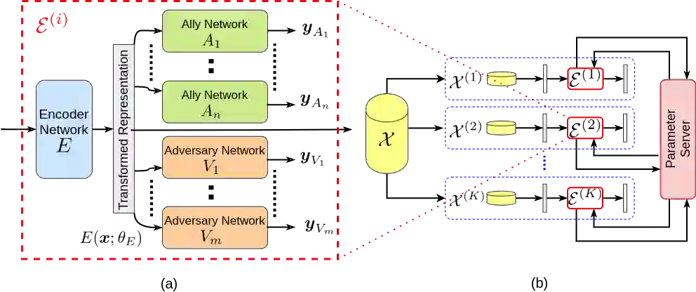 翻译:我们研究的是与现有PRL解决方案不同的多种盟友和敌对属性的学习代表性问题。虽然集中汇总的数据集是大多数PRL技术的先决条件,但现实世界中的数据往往分散在多个分布式节点中,因为隐私问题而不愿分享原始数据。我们通过开发D-EIGAN来解决这一实际制约因素。D-EIGAN是第一个分布式的PRL方法,在每一个节点上学习D-EIGAN,在不传输源数据的情况下,在每一个节点上学习演示。我们从理论上分析在EIGAN和D-EIGAN最优化和D-EIGAN编组下对手的行为以及盟友和敌对任务之间对优化目标的依赖性的影响。我们在各种数据集上的实验表明EIGAN在性能、稳健和可扩展性方面的优势。特别是,EGAN在电子网络下以显著的准确性差差(EIGAN)优于先前的状态。