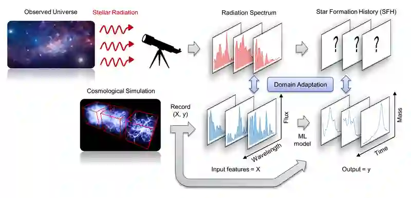 翻译:今天,机器学习的典型模式是利用以往的观测来预测未来。然而,如果我们对了解过去感兴趣,因为目前的情况?这种情况确实是一个天文学家必须经常面对的情况。为了了解宇宙的形成,我们必须从星系可见质量内容的时间演变中得出一个完整的恒星生命期。然而,为了克服这一困难,天体物理学家需要等待10亿年的时间。为了克服这一困难,天体物理学家利用超级计算机,并进化到宇宙目前这个时代之前的模拟星系模型,从而在观测到的辐射和恒星形成史之间绘制地图。这种地壳的SFH在实际的星系观测中缺乏,而这种地壳通常 -- -- 往往缺乏信心 -- -- 利用Bayesian的装配方法从光谱能量分布中推断出来。在本次调查中,我们讨论了未经监控的域适应是否有能力用模拟数据获得精确的星系SFH,作为开发最终可用于观测数据的技术的必要的第一步。