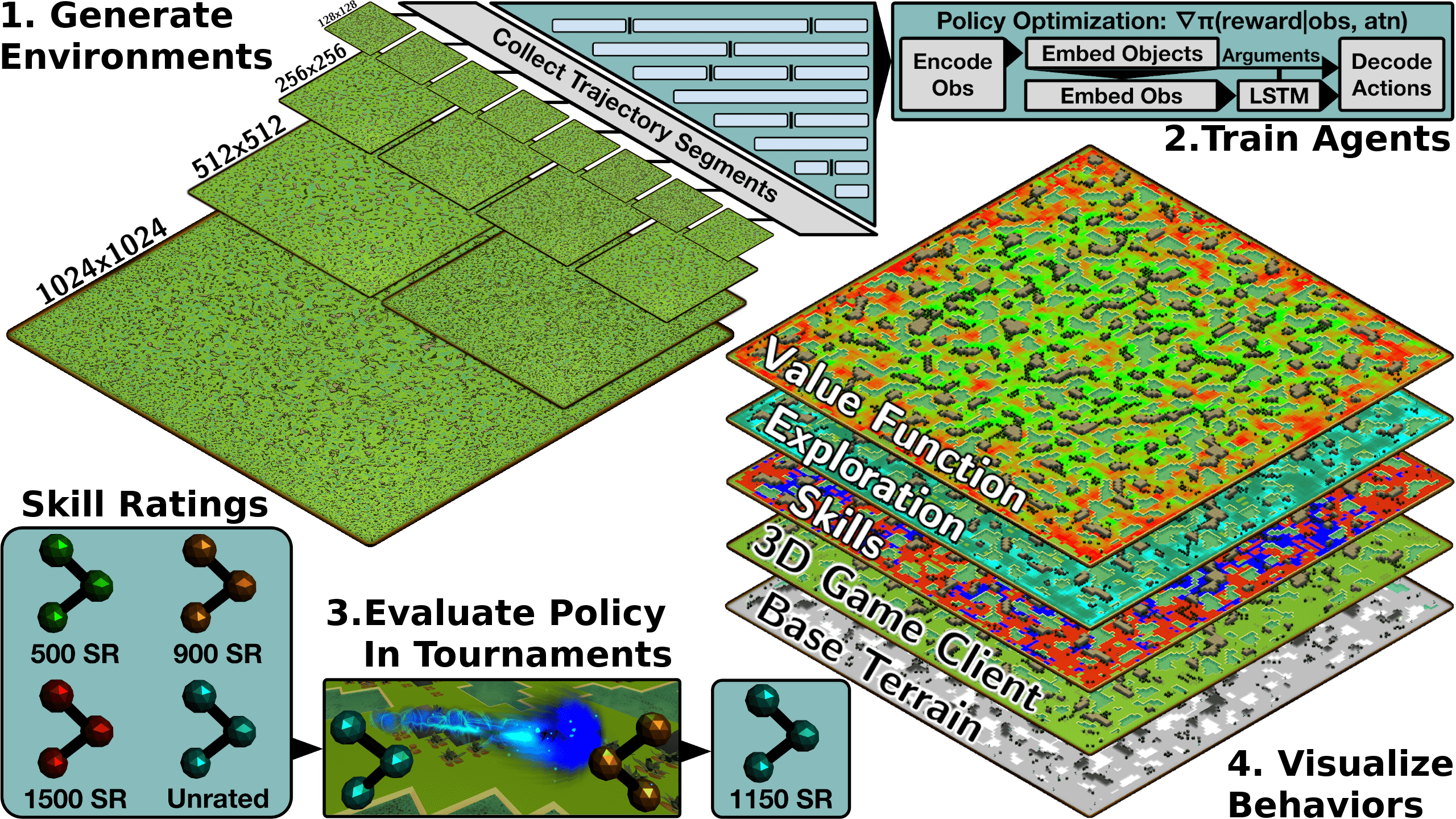 翻译:神经MMO(Neoral MMO)是一个可计算使用的研究平台,它包括大量物剂、长时间跨度、开放式任务和模块游戏系统。现有环境具有这些特性的子集,但神经MMO(Neoral MMO)是第一个将其组合起来的。我们将神经MMO(Neoral MMO)作为自由和开放源代码软件,提供积极的支持、持续开发、文件编制和额外培训、记录和可视化工具,以帮助用户适应这一新的环境。平台上的初步基线显示,受过大量培训的物剂可以探索更多技能,学习技能的发展。我们提出了其他更困难的问题,比如许多团队合作,如开放式研究问题,神经MMO(Neoral MMO)非常适合回答。最后,我们讨论了平台当前的局限性、潜在减缓和持续开发计划。