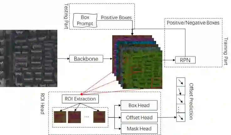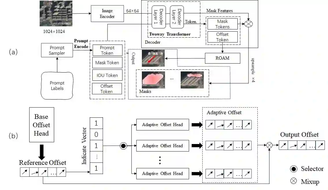 Accurate measurement of the offset from roof-to-footprint in very-high-resolution remote sensing imagery is crucial for urban information extraction tasks. With the help of deep learning, existing methods typically rely on two-stage CNN models to extract regions of interest on building feature maps. At the first stage, a Region Proposal Network (RPN) is applied to extract thousands of ROIs (Region of Interests) which will post-imported into a Region-based Convolutional Neural Networks (RCNN) to extract wanted information. However, because of inflexible RPN, these methods often lack effective user interaction, encounter difficulties in instance correspondence, and struggle to keep up with the advancements in general artificial intelligence. This paper introduces an interactive Transformer model combined with a prompt encoder to precisely extract building segmentation as well as the offset vectors from roofs to footprints. In our model, a powerful module, namely ROAM, was tailored for common problems in predicting roof-to-footprint offsets. We tested our model's feasibility on the publicly available BONAI dataset, achieving a significant reduction in Prompt-Instance-Level offset errors ranging from 14.6% to 16.3%. Additionally, we developed a Distance-NMS algorithm tailored for large-scale building offsets, significantly enhancing the accuracy of predicted building offset angles and lengths in a straightforward and efficient manner. To further validate the model's robustness, we created a new test set using 0.5m remote sensing imagery from Huizhou, China, for inference testing. Our code, training methods, and the updated dataset will be accessable at https://github.com/likaiucas.