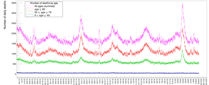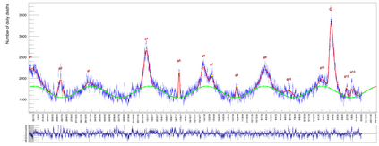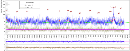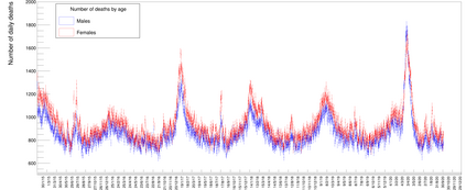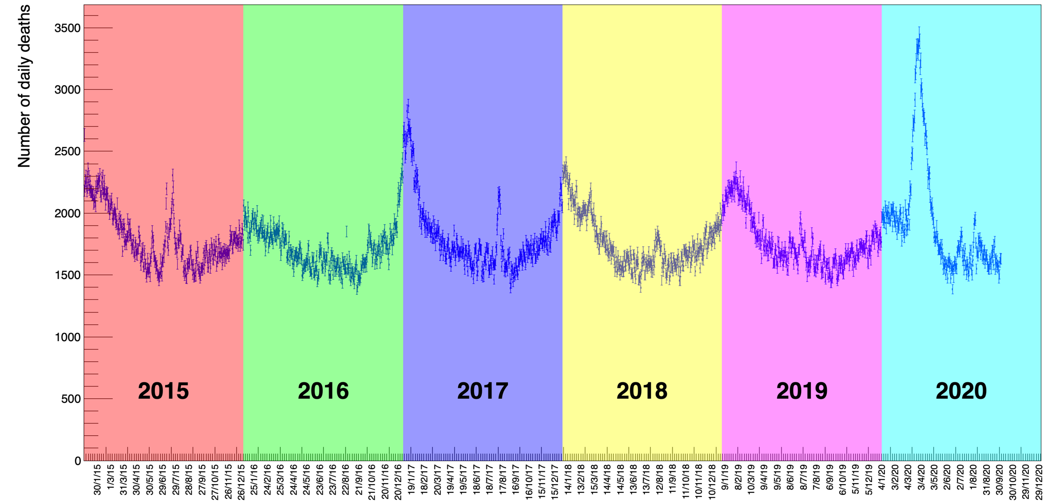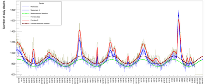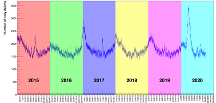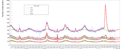 翻译:我们分析了意大利国家统计局(ISTAT)公布的关于意大利1/01/2015至30/09/2020年期间的伤亡数据,这些数据显示出明显的类象行为,这可以有力地减少意大利的伤亡基线趋势,在冬季和夏季最热的时期,与流感流行病对应的死亡率有盈余,虽然这些高峰的形状是对称的,但与COVID-19流行病巧合的高峰是不对称的,而且更加明显。我们把前者与Gaussian功能相匹配,而后者与Gompertz功能相匹配,以便量化伤亡人数、持续时间和所有超重死亡原因的位置。与数据相符的总体质量非常好。我们讨论意大利不同年龄段和不同性别的伤亡趋势。我们最后将ISTAT所报告的数据采集的伤亡趋势与意大利公民保护部(DPC)报告的与COVID-19直接造成死亡的伤亡相比,我们讨论了差异。