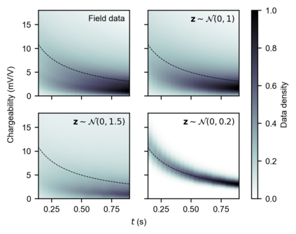 翻译:我们用变式自动电解码器(VAE)对时间驱动的极化(IP)现象的数据驱动建模提出了一种新颖的方法。 VAE是巴伊西亚神经网络,目的是学习隐性统计分布,将广泛的数据集编码为较低尺寸表示法。我们在加拿大、美国和哈萨克斯坦各地区收集了1,600319个IP衰变曲线,并汇编了这些曲线以培训深层VAE。提议的深层次学习方法严格不受监督,数据驱动:它不需要对IP数据进行数学处理或地面真实标记。此外,我们的VAE方法避免了IP超常化的陷阱,而根据经验性Cole和Debye分解模型或其他复杂的机械模型,我们在加拿大、美国和哈萨克斯坦各地区收集了1,600319个IP衰变曲线曲线曲线曲线,用来对模型进行深入的模拟数据生成和数据。 (b) Bayesian 模型失常模型和数据不确定性估算, (bisalian) 定量评估, IP-ral-ror-rent 比率比率比,以及自动外检测。我们还将IP 应用的IP 的IPI-co值数据汇编用于一个深度数据缩缩缩缩化, 显示最终的精确度, 和直观, 显示一个空间数据缩缩缩化数据化数据流的精确度,显示我们使用一个可比较的精确度的精确度的精确度的精确度。