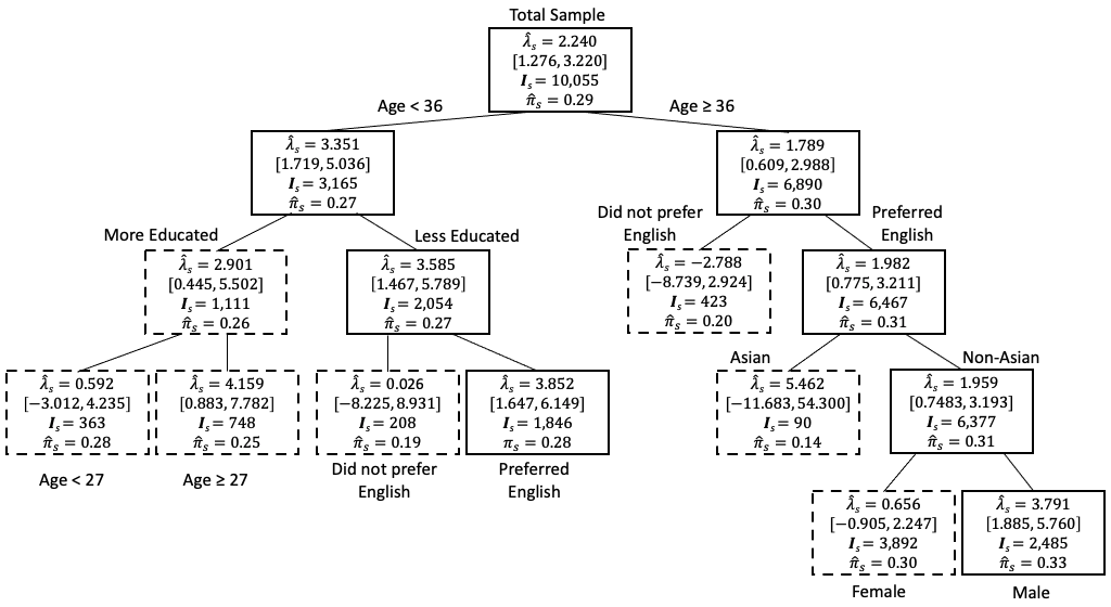 翻译:在随机和观察研究中,人们越来越有兴趣估计因果关系的异质性,然而,在一项工具变量研究中,没有进行多少研究来理解异质性;在这项工作中,我们提出了一个方法,用一种工具变量方法来估计各种因果效应。该方法分为两部分:第一部分使用主题事项知识和可解释的机器学习技术,如分类和回归树,以发现潜在的效果改变剂;第二部分使用闭门测试来测试效果改变剂的统计意义,同时大力控制家庭错失率;我们在俄勒冈健康保险实验中进行了这种方法,估计了医疗补助对个人健康的影响,但不会妨碍其正常活动的天数,并发现了老年男子的异性证据,他们更喜欢英语,不会自我认同为亚洲人和年轻人,他们最多具有高中文凭或GED,更喜欢英语。