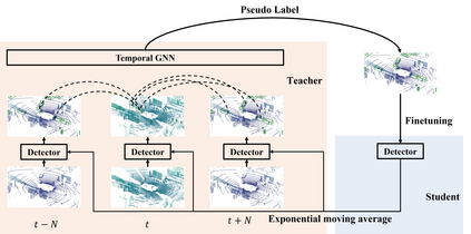 3D object detection plays an important role in autonomous driving and other robotics applications. However, these detectors usually require training on large amounts of annotated data that is expensive and time-consuming to collect. Instead, we propose leveraging large amounts of unlabeled point cloud videos by semi-supervised learning of 3D object detectors via temporal graph neural networks. Our insight is that temporal smoothing can create more accurate detection results on unlabeled data, and these smoothed detections can then be used to retrain the detector. We learn to perform this temporal reasoning with a graph neural network, where edges represent the relationship between candidate detections in different time frames. After semi-supervised learning, our method achieves state-of-the-art detection performance on the challenging nuScenes and H3D benchmarks, compared to baselines trained on the same amount of labeled data. Project and code are released at https://www.jianrenw.com/SOD-TGNN/.